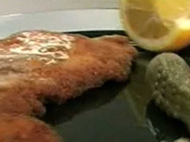 Приготовте изумительную котлетку по-виенски.Состав:телятина — 6 кусочков;яйца — 3 штуки;каперсы, лимон, петрушка, масло, соль, панировочные сухари.